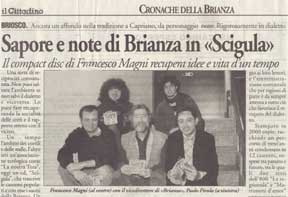 Ancora un affondo nella tradizione a capriano, da personaggio noto. Rigorosamente in dialetto. SAPORE E NOTE DI BRIANZA IN SCIGULA Il compact disk di Francesco Magni recupera idee e vita di un tempo.
